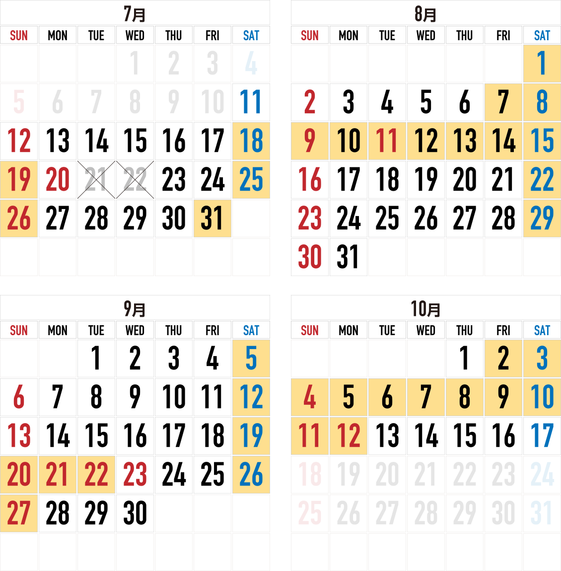 ※オレンジ色の日は、